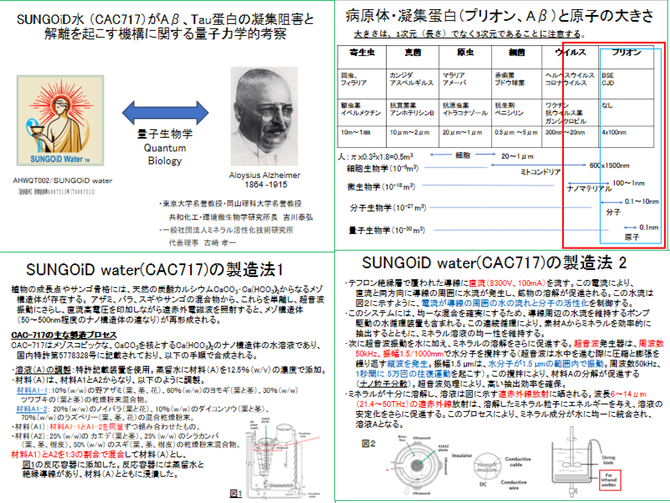 しかし、SUNGOiD水が、プリオン病の原因となる異常プリオン蛋白質(プリオン)や、 アルツハイマー病の原因となるAβ蛋白質やTau蛋白質の凝集を解離したり凝集を阻害することが明らかになりました(このHPのサンゴイド水:SUNGOiD水)を見てください。